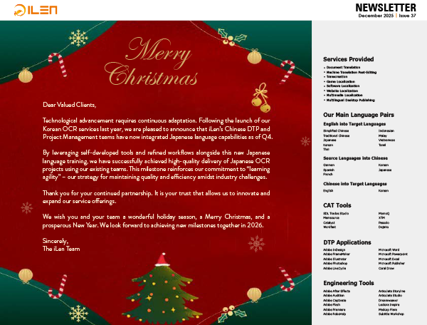 The quarterly iLen Newsletter is an electronic journal of iLen that presents you with the latest company news, business dynamics, client's feedback and team activities. It is a window for you to get to know about iLen. Welcome to download and read it!